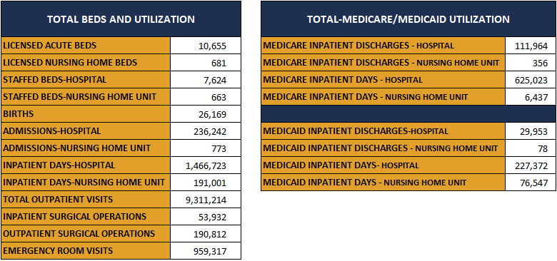 NOTE : Numbers may not add to totals because of rounding. Includes hospital-owned acute care and nursing home data. Beds are total for facilities,